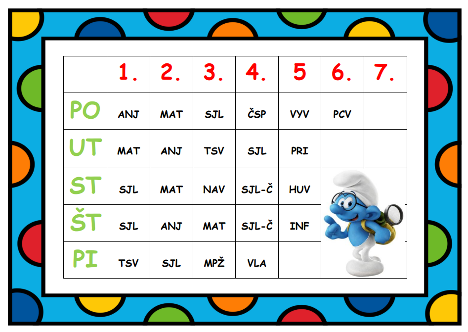 Rozvrh hodín 3.A